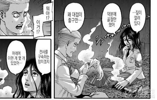 战锤巨人在过来讲演之前貌似在和议长争论着什么,双方虽然分歧很大但是最终还是达成了共识。战车巨人他们掉到了陷阱之中,其实他们要出去并不难,不过他们似乎又别的想法。而战锤巨人的家人似乎成为了人质?感觉这一话信息量很多。