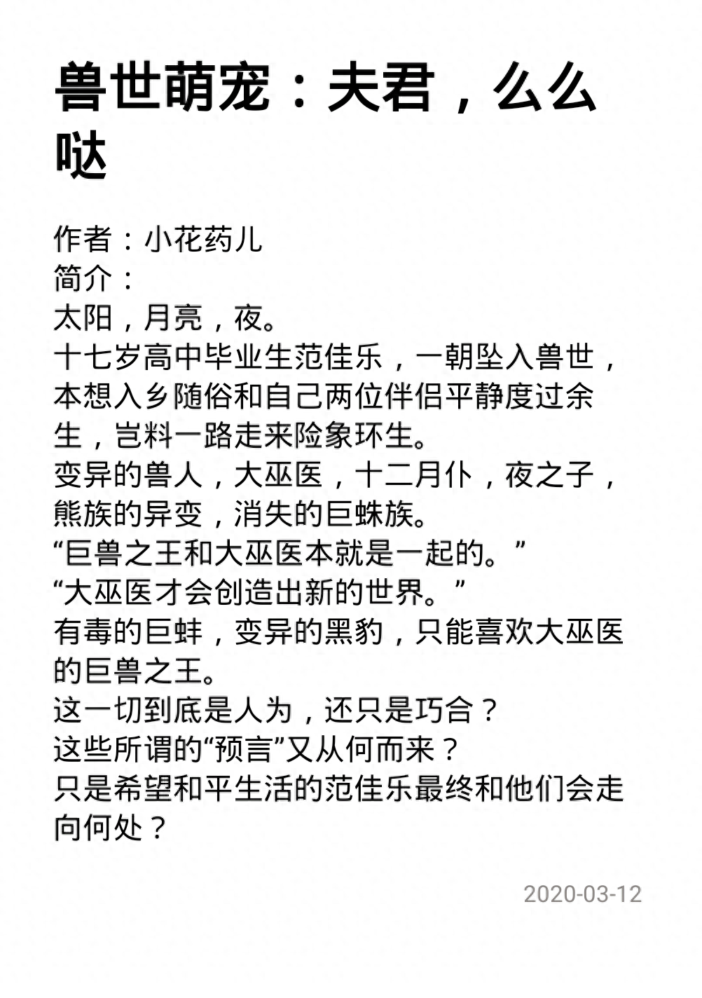 推荐几篇兽世文,1V1或1女n男,有rou有剧情