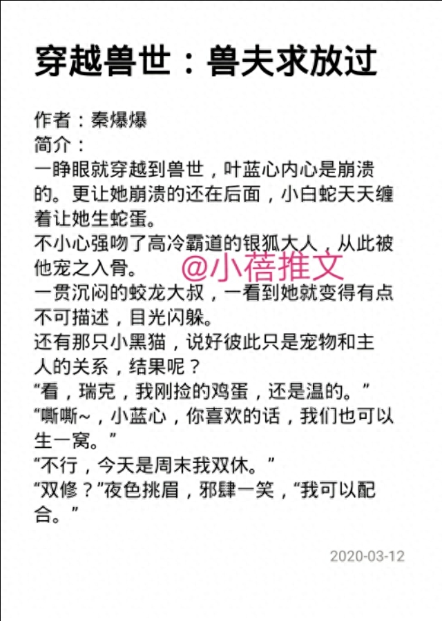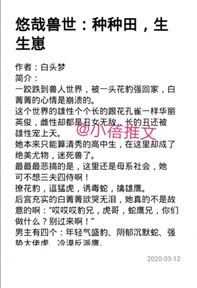 今天推荐的是兽世小说,大部分都是1女n男,有rou有剧情……