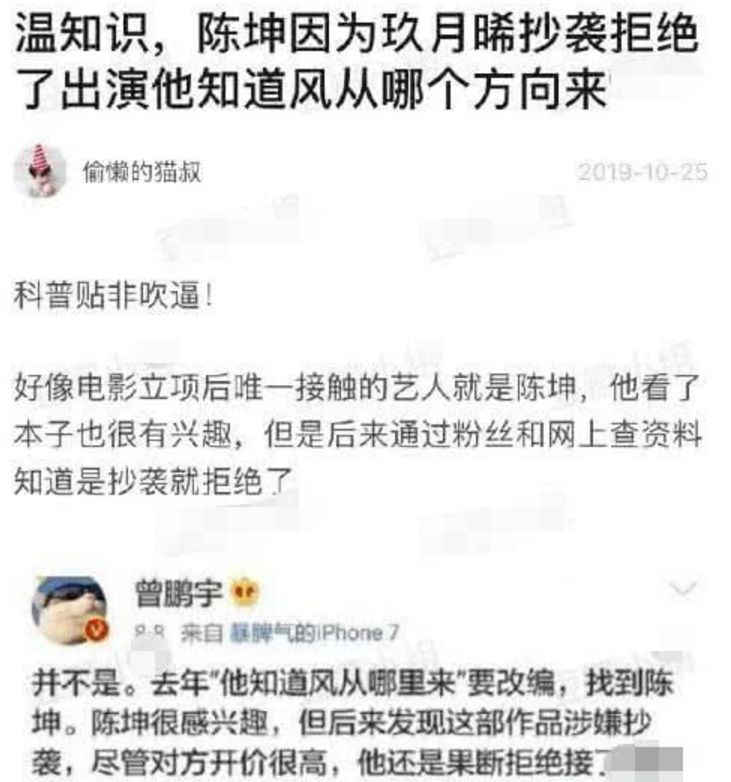 而玖月晞的这部作品,甚至还涉及一个传闻,那就是陈坤曾因她涉嫌抄袭的事情,拒绝出演她的作品。