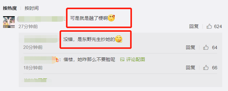 对于网友们指出的大篇幅“融梗”现象,她表示,“关于人性、关于爱的一切都是共通的,是人类永恒的话题。”她称自己不认同网友指责的“融梗”,还称“我的作品中或许有着共通的思考,但没有任何抄袭融梗。”