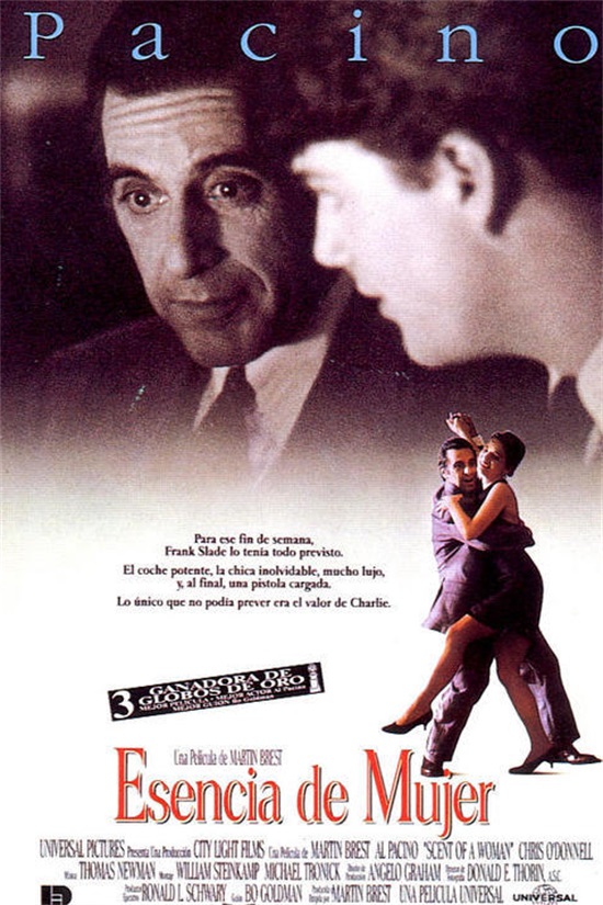 10、《闻香识女人》,阿尔帕·西诺主演,里面的一曲《一步之遥》探戈舞曲奏响生命的热情。