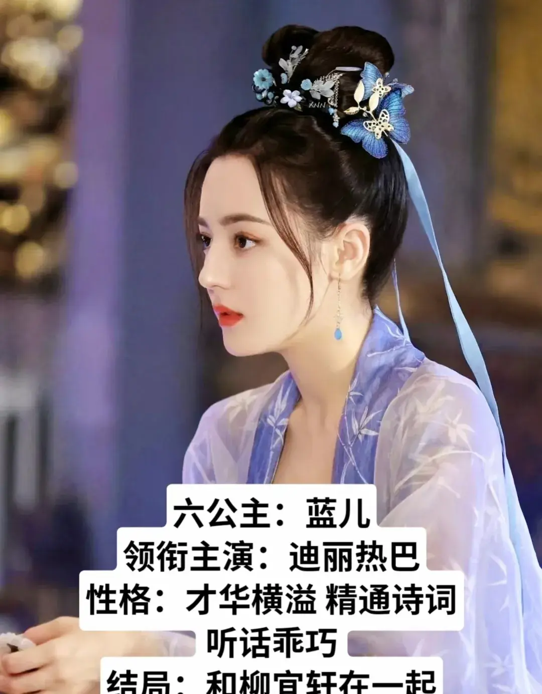 迪丽热巴饰六公主(蓝儿):才华横溢、乖巧听话、精通诗词,和柳宜轩在一起!