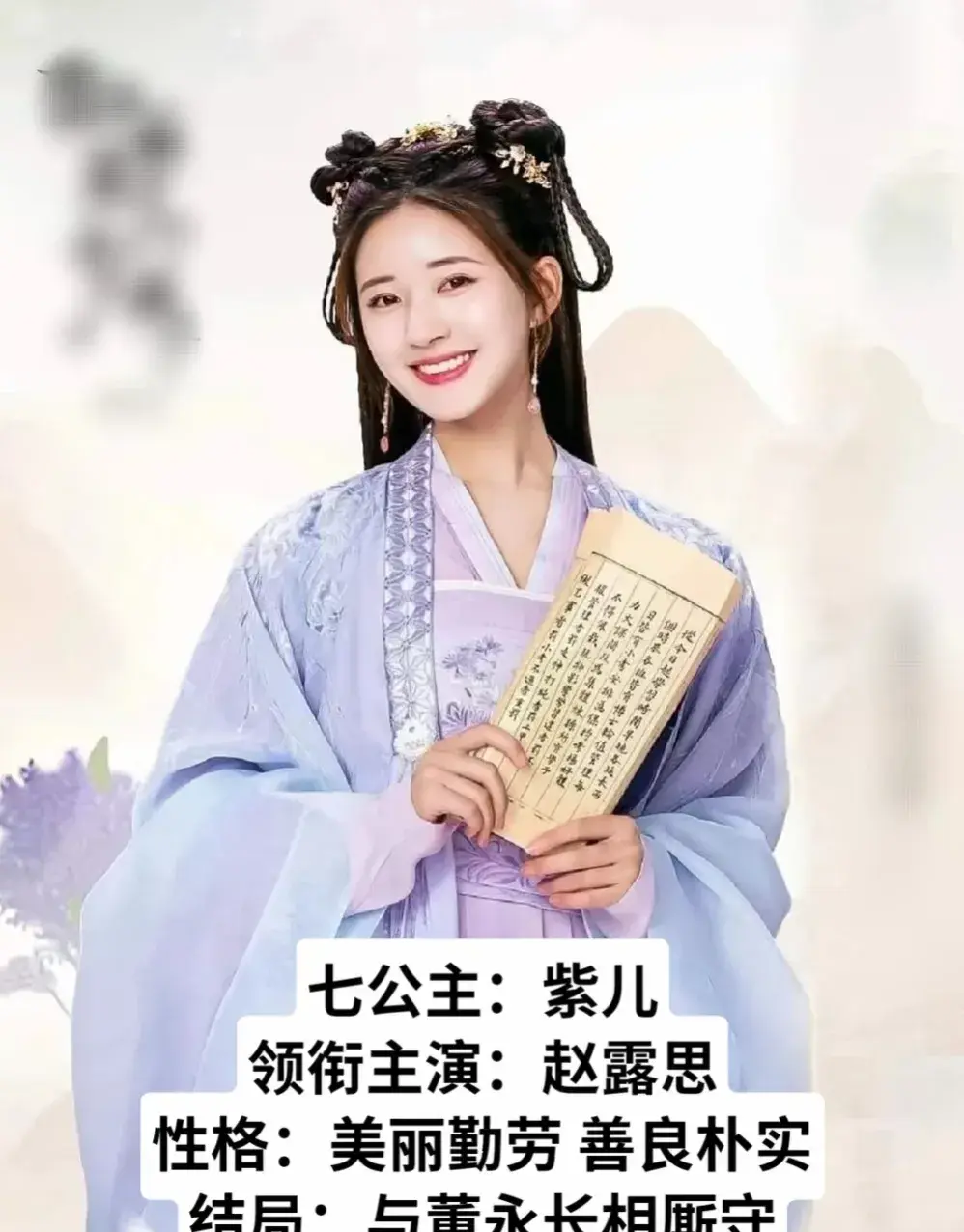赵露思饰七公主(紫儿):美丽勤劳、善良朴实,与董永长相厮守!