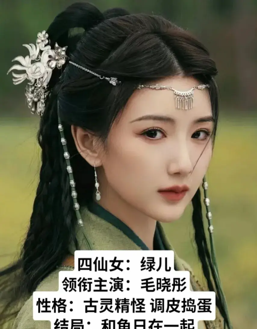 毛晓彤饰四仙女(绿儿):古灵精怪、调皮捣蛋,最后和鱼日在一起!