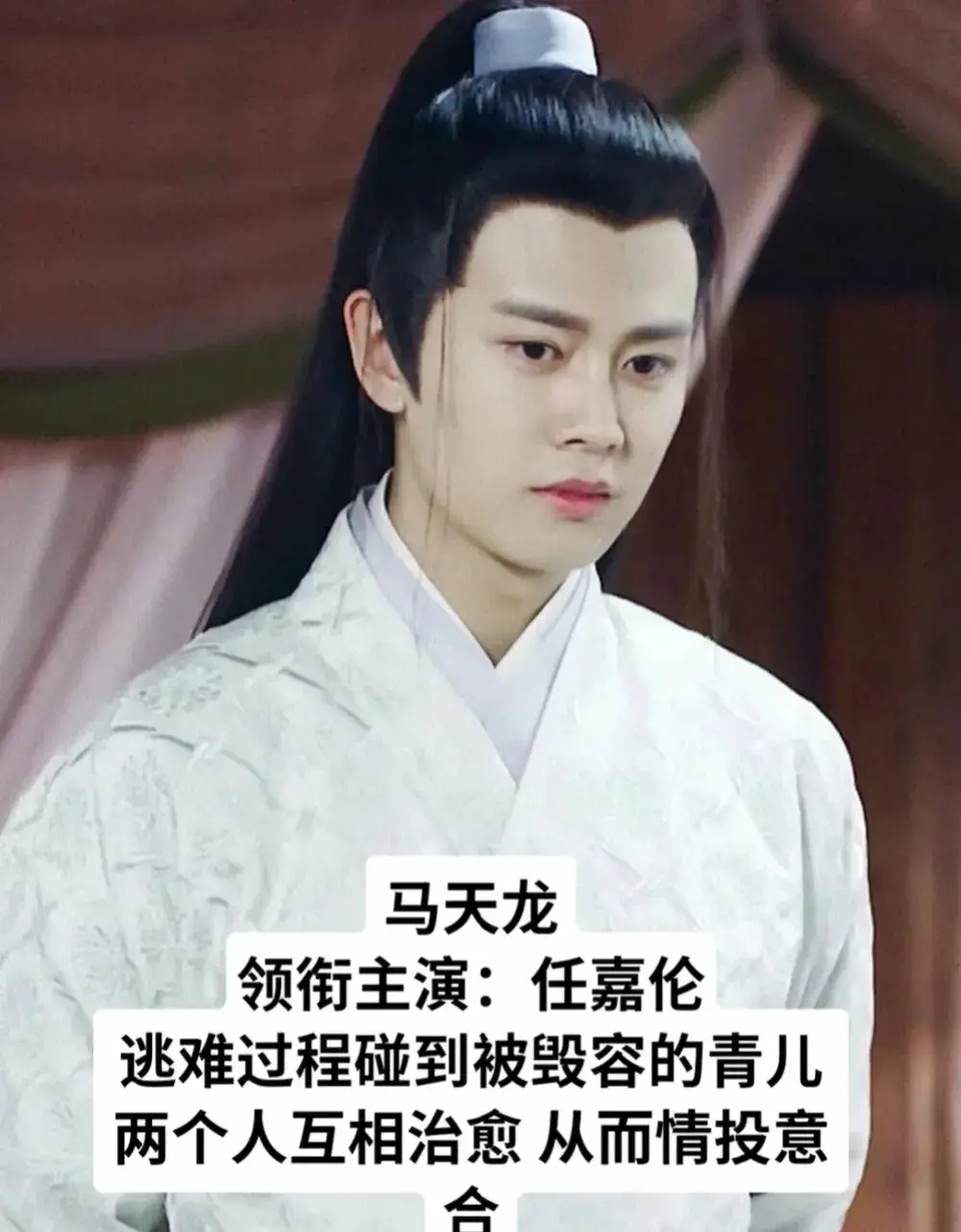 任嘉伦饰马天龙:逃难过程中碰到被毁容的青儿,两人相互治愈,从而情投意合!