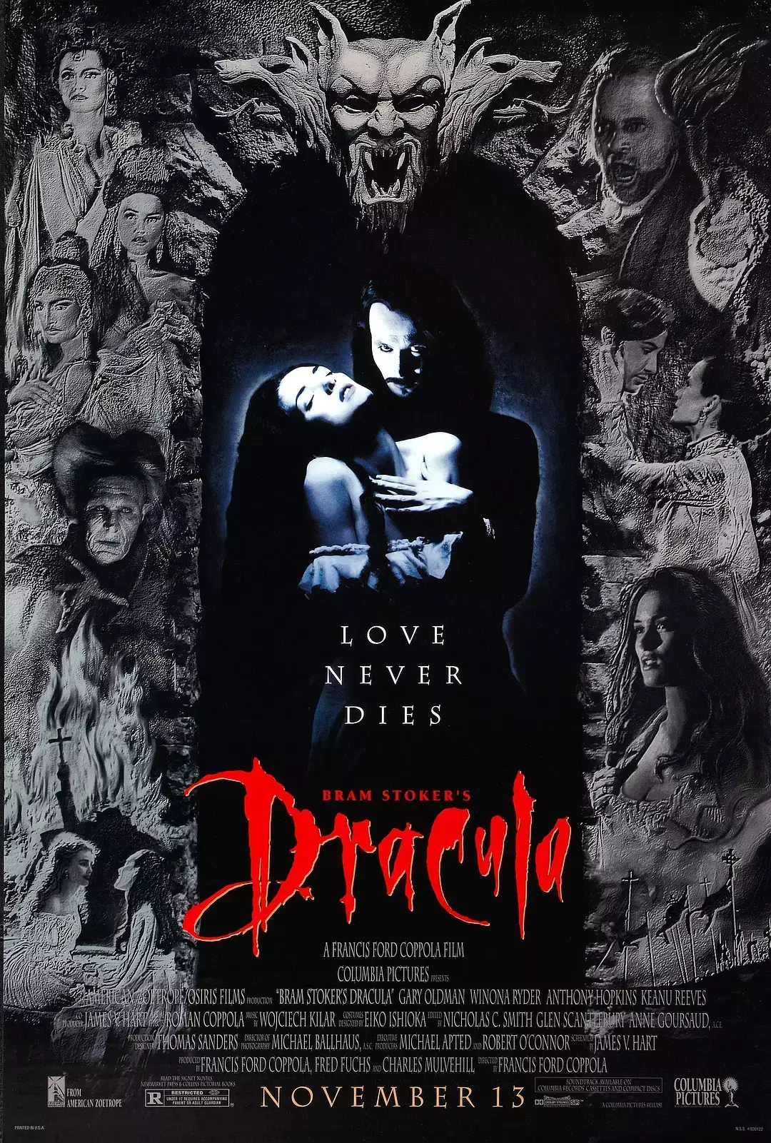 《吸血僵尸惊情四百年》改编自布拉姆·斯托克的小说《德古拉》,由弗朗西斯·福特·科波拉执导,加里·奥德曼,薇诺娜·瑞德,基努·李维斯等主演的恐怖片。