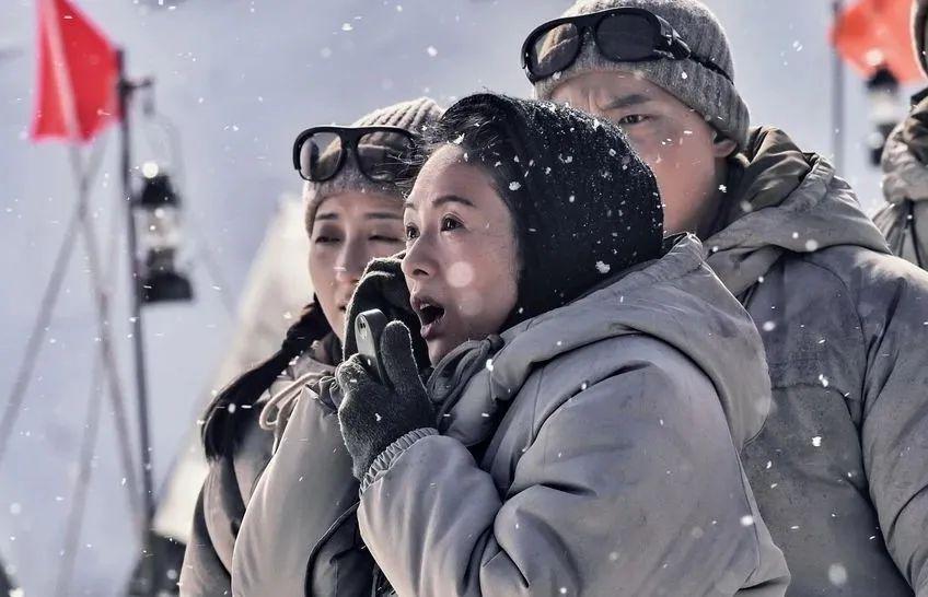 这一段,巩俐饰演的郎平和这些老女排们,根本就是分开拍摄的,于是镜头一边给到老女排迎战日本的顽强拼搏,一边给到巩俐不知道看着什么兀自感动,然而观众很快就能意识到郎平并没有和那些幻象同框,于是在镜头一来一回的拉扯之中,同样出现了某种撕裂的观感,我能想到巩俐在演出时就是对着空无一人的背景努力装作看到了过去的自己,甚至要为此热泪盈眶。