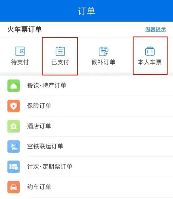 “已支付”或“本人车票”