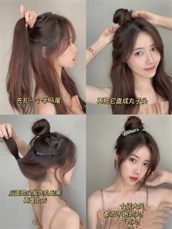 盘头发的方法教程(怎么盘头发简单又好看?四款俏皮甜美的盘发,小笨手也能学得会)