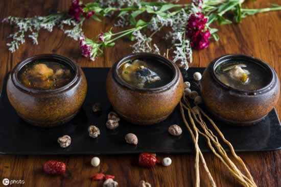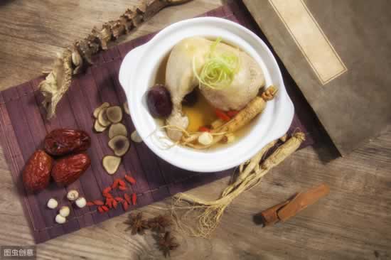 制作方法:鸡腿剁块,放入沸水中氽烫、捞起、冲净,药材用清水快速冲洗,沥干。将鸡腿和所有药材一起放入炖锅,加水7-8碗,以大火煮开后转小火慢炖30分钟即可。炖的过程中可适当搅拌,使药材完全入味。服用时早晚各一碗,每天2次,全部服完后,隔5天再服。