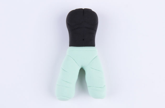 绿色+白色粘土混出上图的淡绿色,然后做出两条腿,并划出裤子上的纹理。