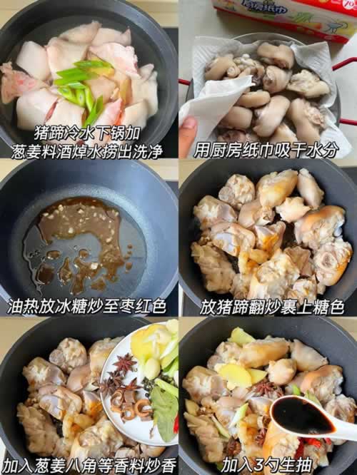 红焖猪蹄胶原蛋白丰富,有嚼劲,但为什么就是自己在家做就做不好呢?不是味道不够就是咬不动,无非是2个原因,一是配料没有入味,第二个就是没有焖够时间,另外还有一些集美会提到上色不均匀的问题,和焖出来味道有苦味,这些都是红焖猪蹄里的细节问题,那今天就一次性把这些问题都解决掉吧,爱吃猪蹄的妹子们,赶紧做好小笔记了。