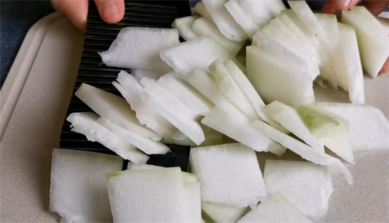 1、冬瓜片不要切得太薄了,稍微厚一点,口感和味道会更好。
