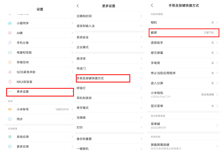 当初还是看同事的oppo手机,三指下滑屏幕就能进行截图,很羡慕,后来发现小米手机也可以进行三指截屏操作。