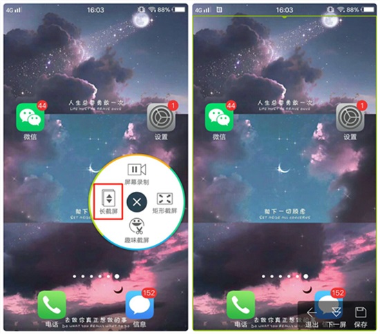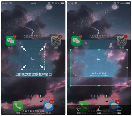 如果我们只需要截下手机屏幕的某一个部分的话,我们就可以选择【矩形截屏】,选择需要截屏的区域进行截屏就可以了,大小位置可以直接调整。