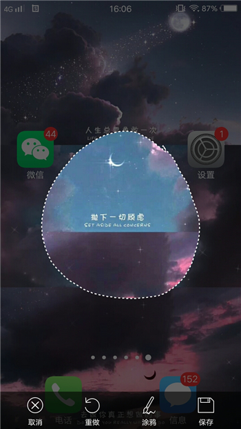 如果选择【套索截屏】的话,我们就可以直接在手机屏幕上画出一个首尾相连的图形,即可以那样的图形截下手机屏幕。