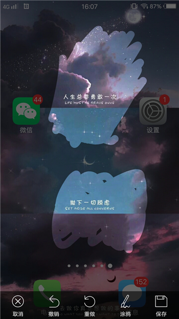 如果选择【涂鸦截屏】的话,我们就可以随意在屏幕上涂鸦,然后手机就会以我们涂鸦出来的结果进行截屏操作。
