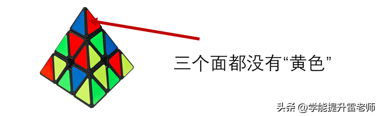 找到没有“黄色”的角块作为塔尖。