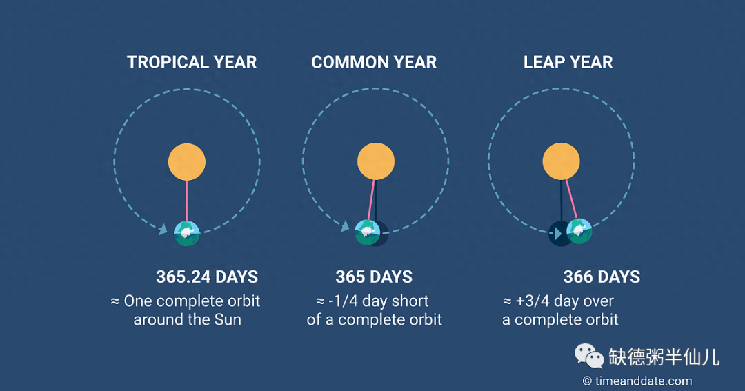 于是人们把这段时间叫做一年(year 一词来自于古语表示季节的词汇),我们现在把这叫做一个回归年(tropical year),大概是 365.24天。