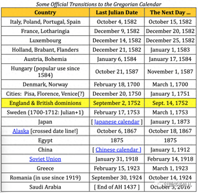 插曲:也就是说,包括美国在内的这些国家在1752年才发生“消失的10天”