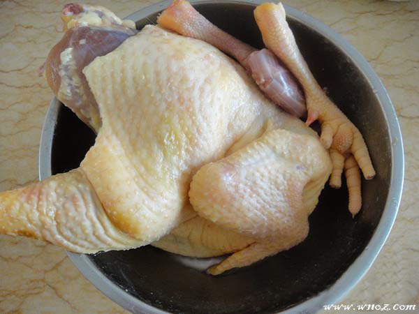 1、市场上还是挺容易买到好的三黄鸡,买一头然后在市场上宰杀好拿回家洗干净,然后把鸡切两半,一次做一半就够了,另外一半冰冻起来下次煲汤什么都可以;
