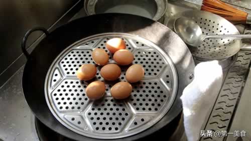 锅中烧水,把洗干净的鸡蛋轻轻的放在篦子上,盖上锅盖,上气以后开始计时,蒸6分钟就熟了。