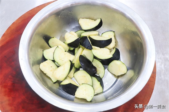 2.茄子用食盐腌制杀出水分,能够破坏里面的收缩体,减少吸油量,裹淀粉同样能减少茄子吸收,还能帮助茄子定型,成菜更加健康、美观。