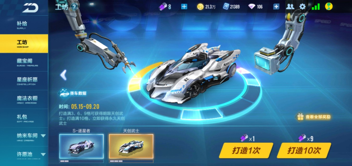 方式一,在工坊打造。工坊里有点券车和钻石车,钻石车需要氪金才能打造,点券车可以用游戏里的免费货币——点券打造。作为白嫖党,当然首选点券车进行打造。想要打造永久的点券车,需要一定的运气成分。规则是打造成功任何一格都有可能获得永久的这辆点券车,否则只能老老实实打造满10格,满了10格必出永久。然而,不是每次打造都能成功打造出一格,有时运气好能一次打造成功两三格,又是运气不好,连续打造十组共一百次都未必能打造成功一格。有的玩家在打造最后一格时不知砸了多少点券进去,愣是打造不成功,小编也经历过,真是太令人难受了。