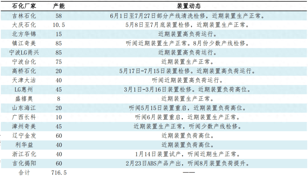 预计本周国产ABS总产量或变动不大,下游补货需求表现平淡。