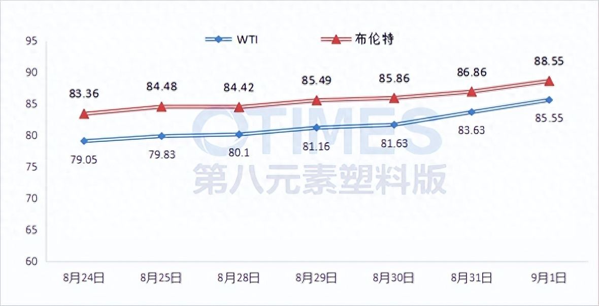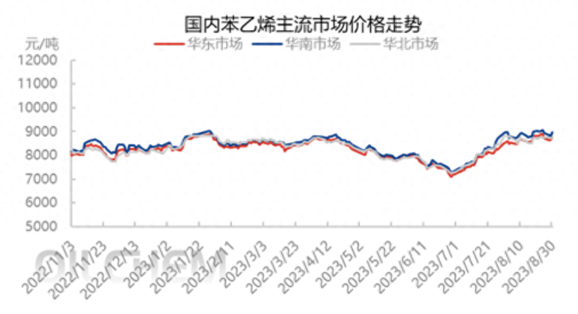 国内三大利好来袭,刺激消费,人民币狂飙300点!七个交易日以来,WTI累计上涨约8.30%,创近一年来新高;布伦特原油期货稳定在11月17日以来的最高水平。国家统计局公布制造业PMI连续三个月回升;房地产相关政策有利于购车消费的恢复;8月31日,国家统计局发布中国采购经理指数。8月份,制造业采购经理指数(PMI)为49.7%,连续3个月回升;表明中国经济景气水平总体保持稳定。多重数据利好,使国外经济学家认为中国市场为石油需求提供了支撑。上周国内港口库存处于低位,上游支撑明显,苯乙烯价格难跌,ABS厂家成本压力下上调出厂报价,市场价格跟涨!后市苯乙烯产业链具体走势将会如何,请看以下具体分析~