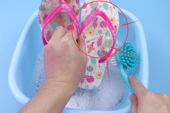 刷洗完以后,我们再用清水把拖鞋冲洗干净晾晒干,鞋子就干净得好像刚买回来一样,这样又可以省下几十块钱买鞋子的钱了。