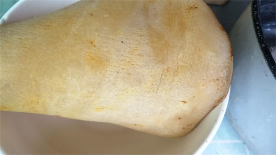 老板帮我烧好的猪皮,轻轻一刮就干净了,不会有腥味