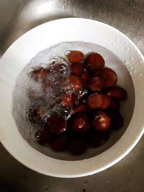 1、板栗清洗干净,尤其是外皮的杂质,还要将生虫的挑出,只保留个头饱满的板栗。