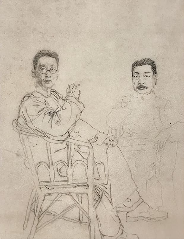 鲁迅与瞿秋白(未完成) 徐悲鸿油画