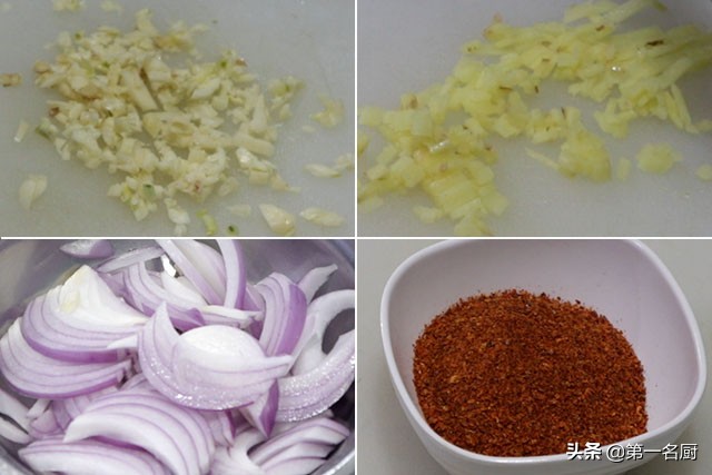 食材:洋葱,蒜子,生姜,白芝麻,辣椒面