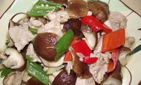 香菇 适量、胡萝卜 适量、柿子椒 适量、猪肉 适量、花生油 适量、精盐 适量、酱油 适量、淀粉 适量、味精 适量、辣椒(红,尖,干) 适量、葱 适量、姜 适量、蒜 适量