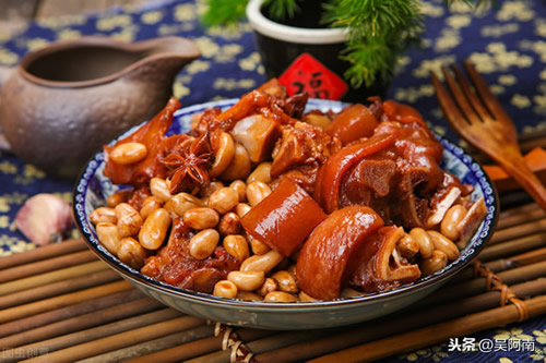 【准备材料】猪脚,黄豆,花生,葱姜蒜,八角桂皮香叶花椒辣椒,老抽,生抽,盐,冰糖,料酒等。
