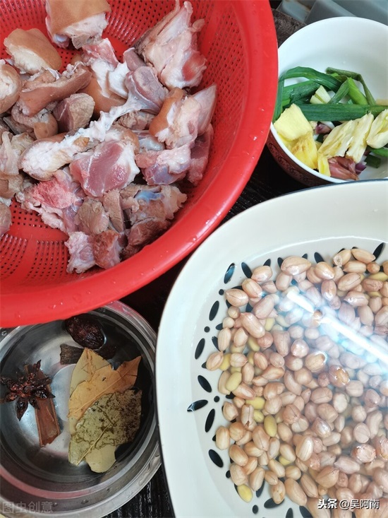 2.花生和黄豆最好提前泡发好,不然很难入味,也很难煮烂;
