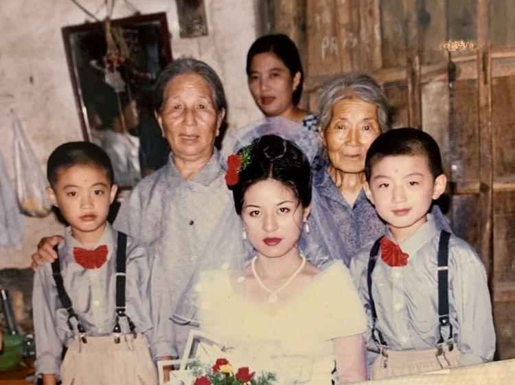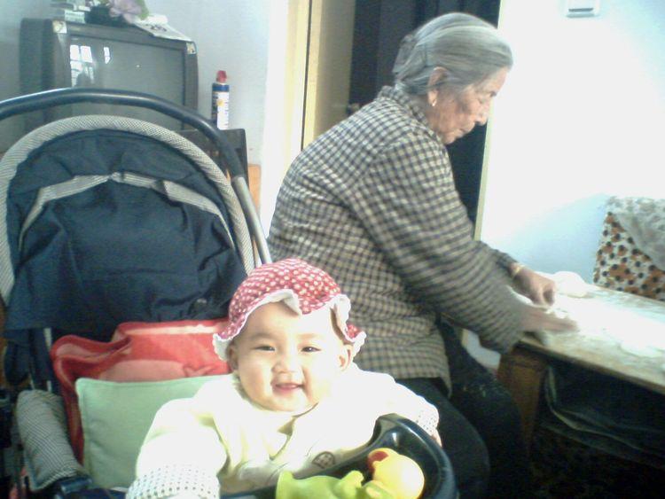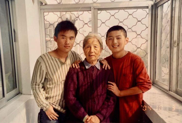 二姐儿子王蒙、我儿子彬彬和姥姥在一起