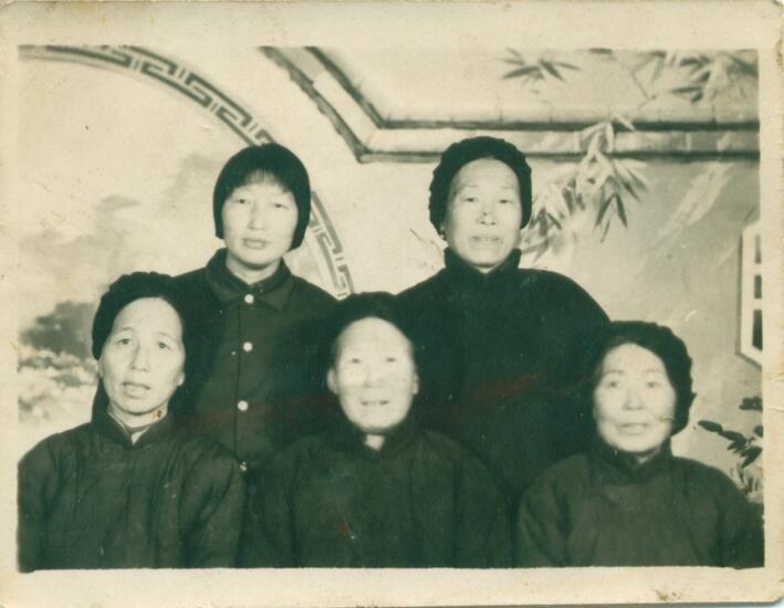 娘和(左起)大姑、大娘(上排左起)四姑、二姑合影/拍于1976年冬