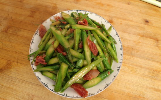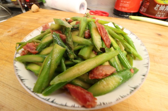 今天这个芦笋炒腊肠就做好了,芦笋脆爽可口,搭配腊肠的肉味非常的好吃,而且这样炒出来的芦笋鲜嫩不变色。