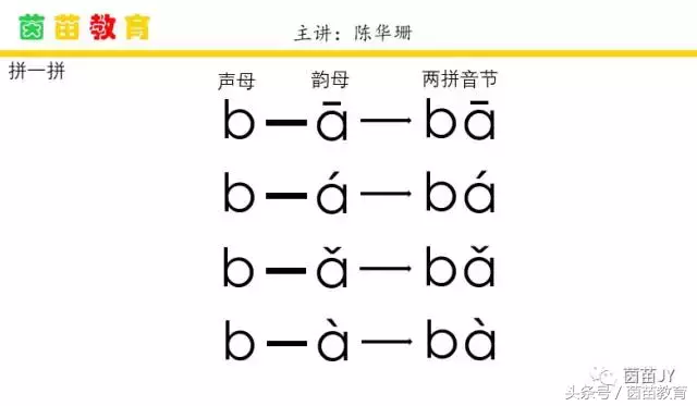 两拼拼音的要领是:“前音(声母)轻短后音(韵母)重,两音相连猛一碰。”