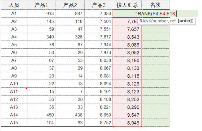 RANK函数:确定数据在数据组中的名次