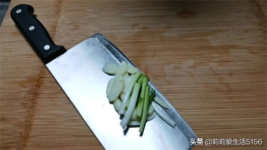 切点葱段(葱段分葱白和葱绿)和蒜片