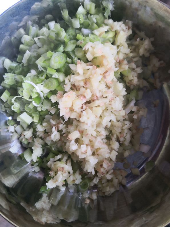 昨天在小程序买了鸡,葱,酸菜和青椒。今天就做葱油粑粑和姜葱鸡,炒酸菜,配白粥简单吃。