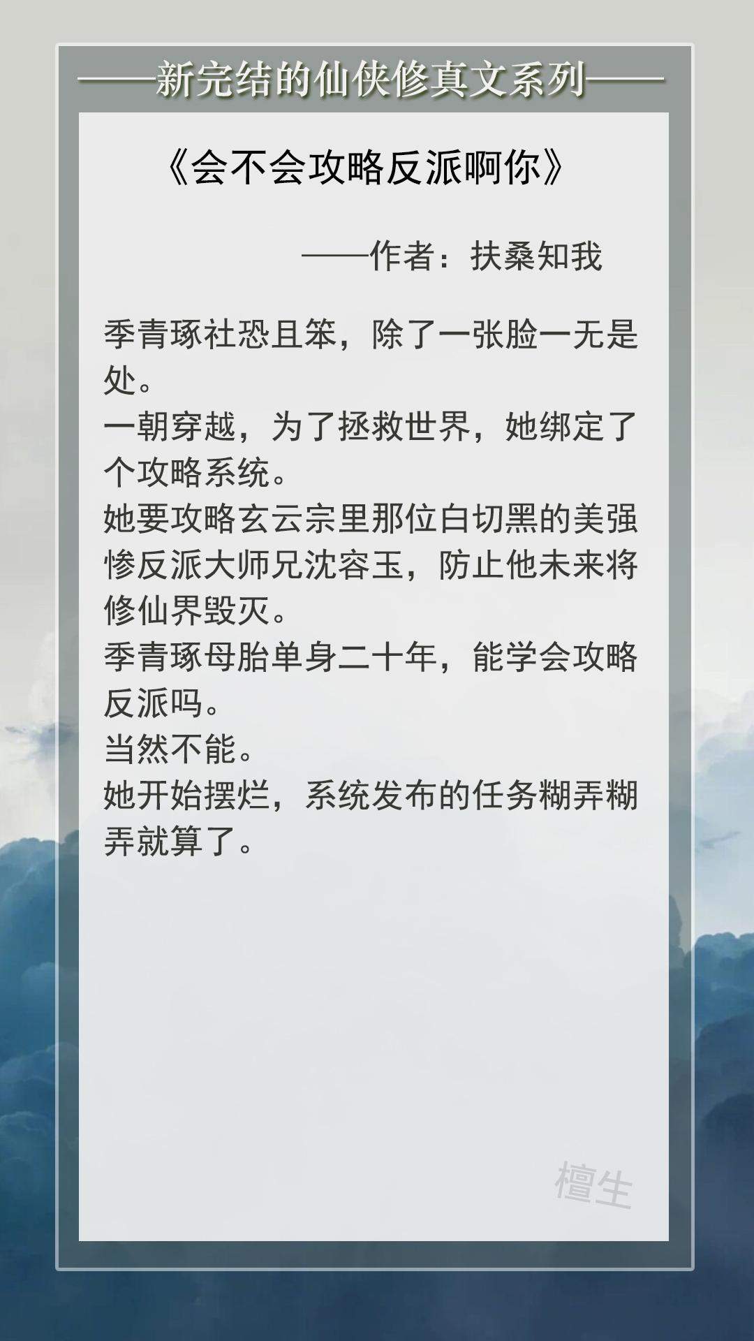 第一本:《会不会攻略反派啊你》作者:扶桑知我