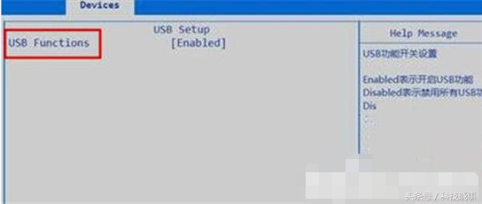 04进入devices后,会看到“usb functions”选项,光标移到“usb functions”对应的右边选项,按回车键;