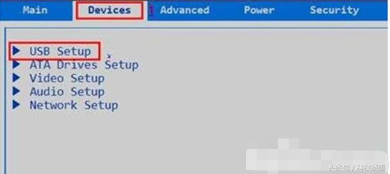 03在电脑关机的状态下,按下开机键使电脑启动,屏幕上出现画面的一瞬间,同时按下切入键(例如:联想电脑的切入键是F2)进入bios,光标移动到“devices”并找到“usb setup”选项再按回车键;