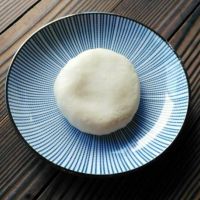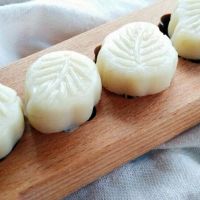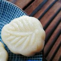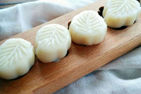 5. 山药泥分成11克左右的小剂子,放入模具中压成形。(这时,用一点炒熟的糯米当干粉,比较容易脱模。)